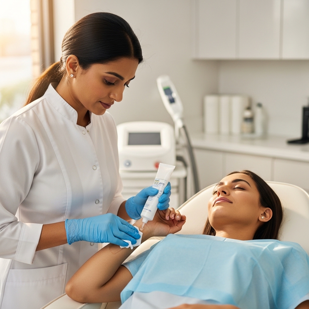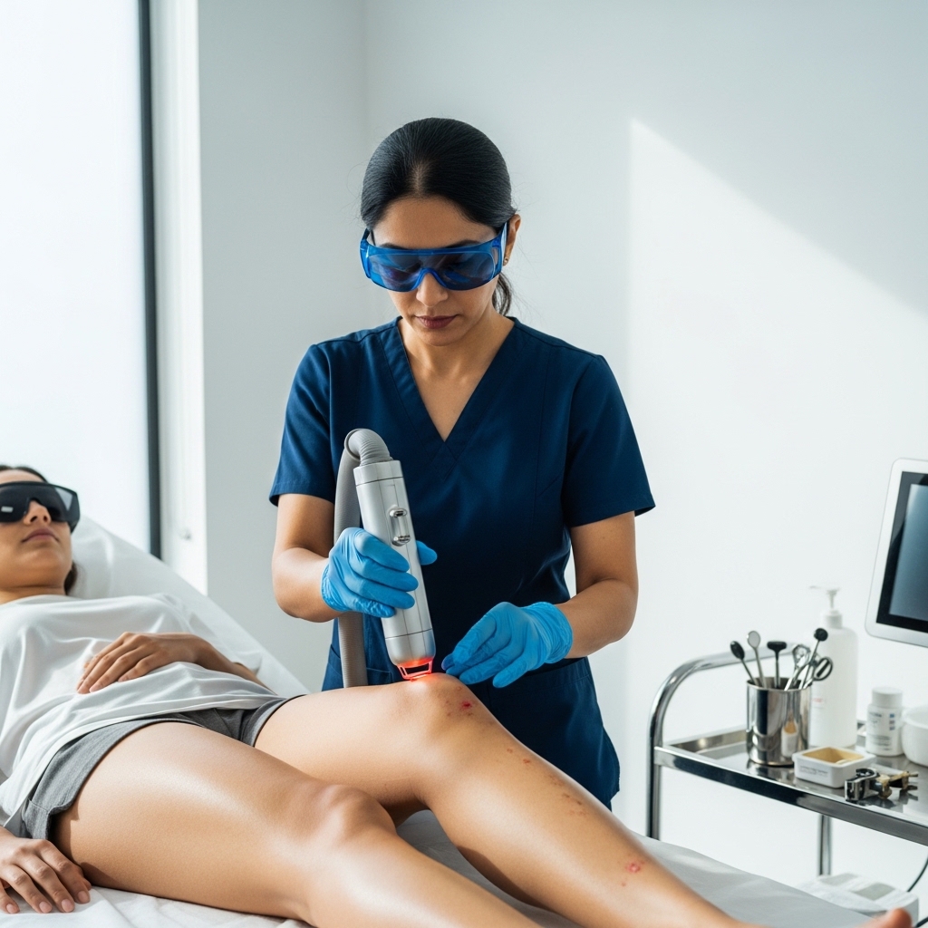 The treatment area is cleaned and prepared to ensure effective and safe laser application.