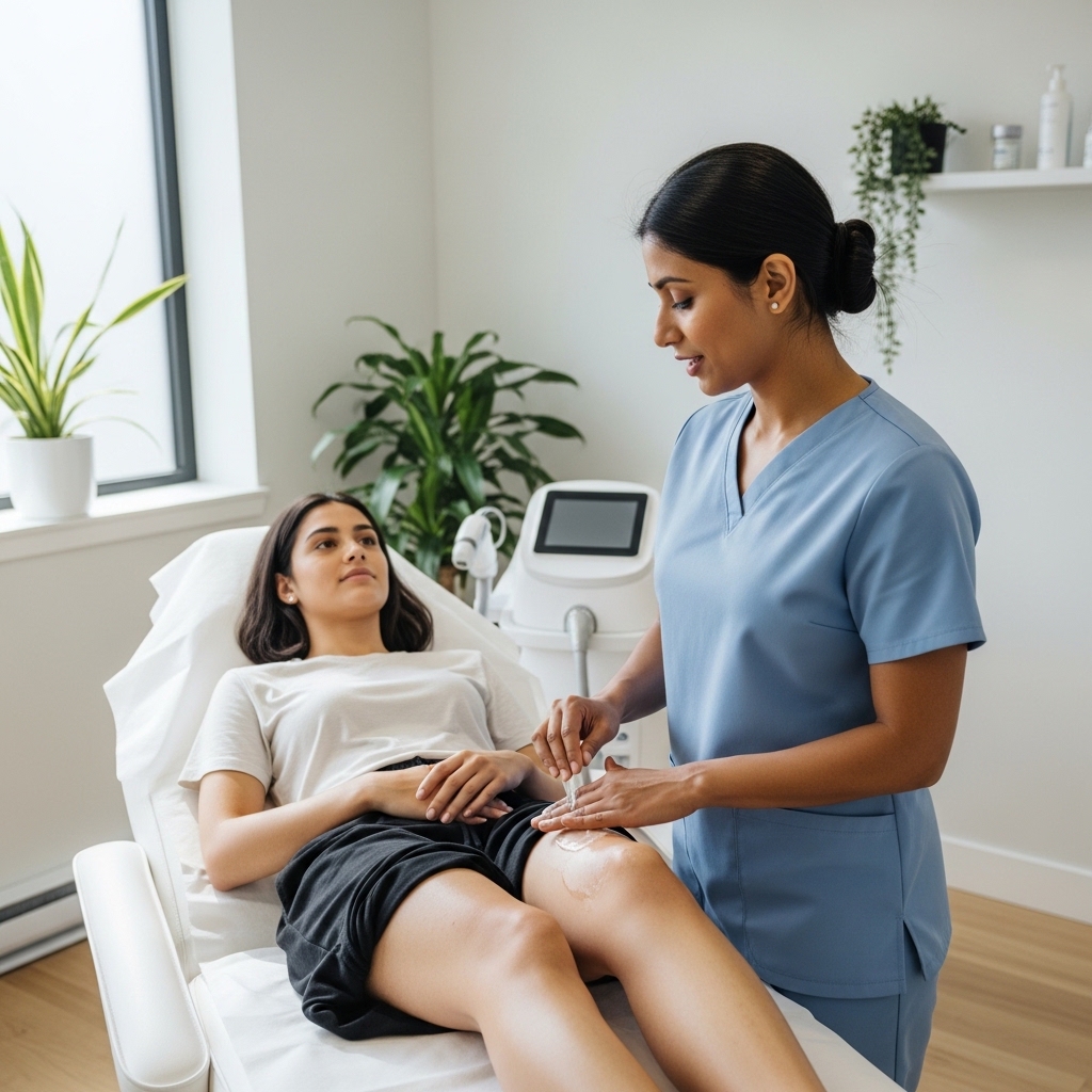 After the session, soothing care is provided and guidance is given to help maintain smooth and healthy skin.